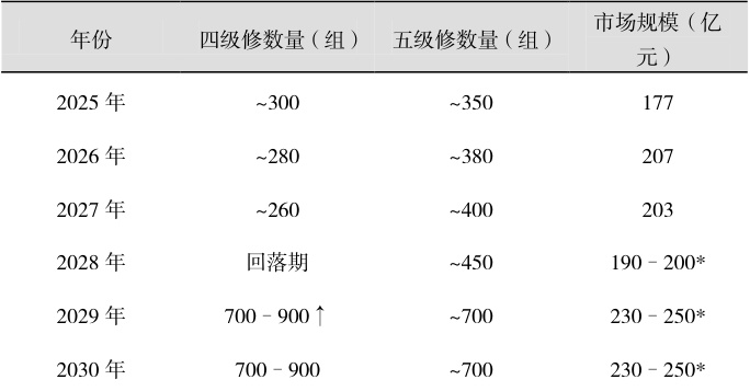 1)四级修(2025–2027 年):年均需求约 370 组,主要集中在 2023–2027 年释放。