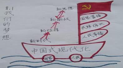 该创意板书的呈现,更好体现课堂教学的过程,体现学生思维的进程,同时学生也在创意板书的不断呈现中,师生互动渐渐深入,最终完成对课本观点的理解,体会到“我们的梦想”的主题,受到深刻的思政教育。