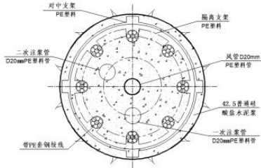 选φ25、φ20mmPE 塑料管,耐压值不低于设计注浆压力1.5 倍。锚具符合设计和《预应力筋用锚具、夹具和连接器(GB/T14370)》规定。4.3 质量保证措施