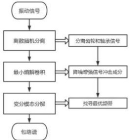 该方法首先通过离散随机分离解耦合,从被测信号中分离出齿轮信号和轴承信号;然后,通过最小熵解卷积对分离后的信号进行逆滤波处理,得到 强的故障信号;之后分别对齿轮和轴承信号使用变分模态分解,选择齿轮和轴承故障信号的最优频带, 后通过包络谱特征来实现发动机附件机匣振动信号的故障诊断,并通过仿真信号,公开数据集和真实试验数据进行验证(如图1)。