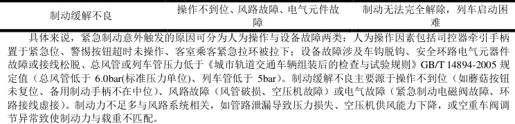 克诺尔制动系统常见故障主要包括紧急制动意外触发、制动力不足及制动缓解不良。通过对某地铁公司2024年制动系统故障的统计分析,得出以下主要故障类型分布: