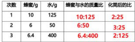 笑笑配置蜂蜜水,配置了3次如下表,请你把表格补充完整