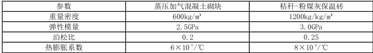 国外学者较早关注温度应力对砌体结构的影响,上世纪三十年代前苏联学者提出砌体受压本构关系表达式;70 年代Hegemier 通过弹性有限元法得出砌体抗剪强度公式,Hamid 通过类似方法获得水平灰缝受剪面的抗剪强度[1]。国内研究中,王铁梦提出“抗”与“放”的裂缝控制原则,其裂缝控制计算公式已获工程界广泛认同[2];金伟良、叶甲淳等结合实际监测数据,运用有限元软件进行建模分析,为温度场模拟提供了参考[3]。但针对新型材料的研究仍属空白。