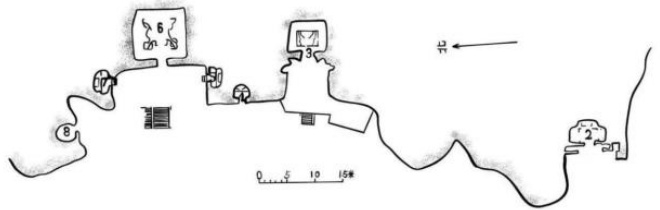 图 2: 北响堂山石窟平面图及3 号窟大佛洞位置(张可可改绘,底图依据:刘东光:《响堂山石窟的凿建年代及分期》,见《华夏考古》1994 年第 2 期第 99 页)