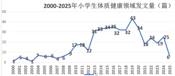 图1.2000—2025 年我国小学生体质健康领域发文量(篇)
