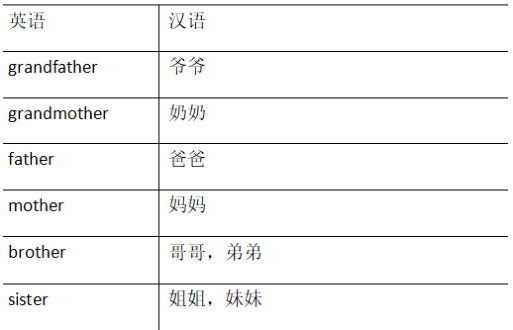 汉英常用亲属称谓词对比表