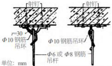 如下图,为建筑室内吊筋布置的“射钉法”施工原理图: