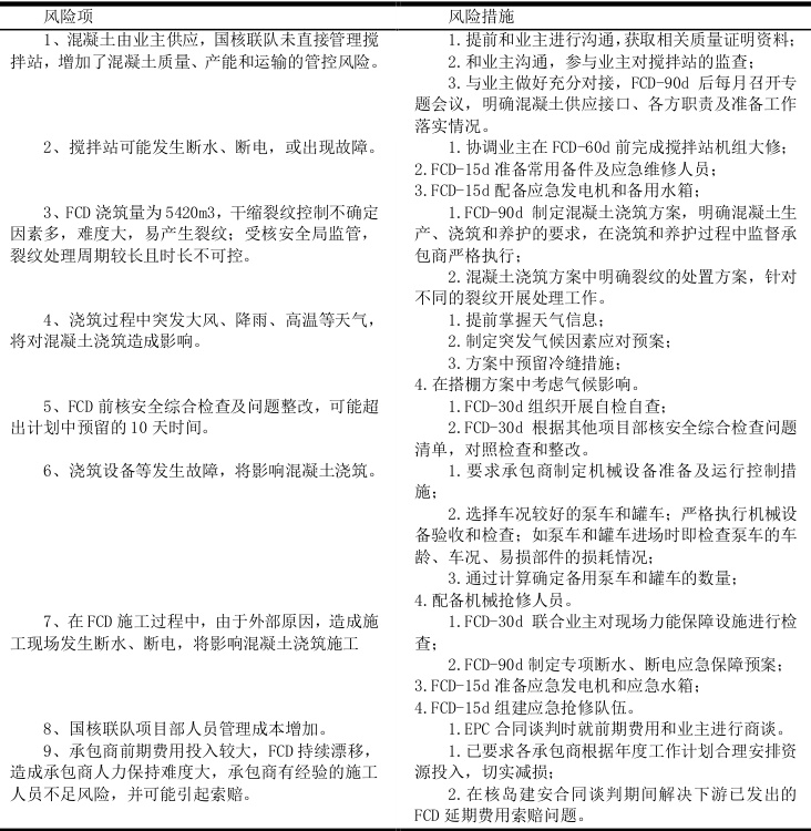 3 3 号机组核岛底板大体积混凝土浇筑风险管理