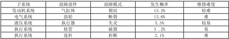 农机维修技术就是指为了维持或者恢复农业机械的正常工作状态,延长农业机械的使用寿命,提高农业机械的工作效率和工作的可靠性,而采取的一系列技术和方法。伴随着现代农业的快速发展,农机具被越来越多的使用起来,农机维修技术显得愈发重要起来。据有关统计数据表明,目前我国农业机械保有量已经超过 2 亿台,其中拖拉机、联合收割机等大型农业机械的保有量也在逐年上升,但是农机维修技术的普及和应用水平仍然相对滞后,农机故障率较高,维修成本增加,严重影响了农业生产效率和效益。据统计,由于农机故障造成的停机时间占总作业时间的 10%~20%,直接经济损失占农业机械总价值的 5%~10% 。所以,加强农机维修技术,提高农业机械化水平,保障粮食安全意义重大。影响当下农业生产的机械故障以发动机系统、传动系统、电气系统、运动执行系统和液压系统等子系统故障为主,如表1 所示,约占故障总数的80%。