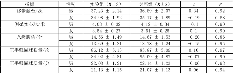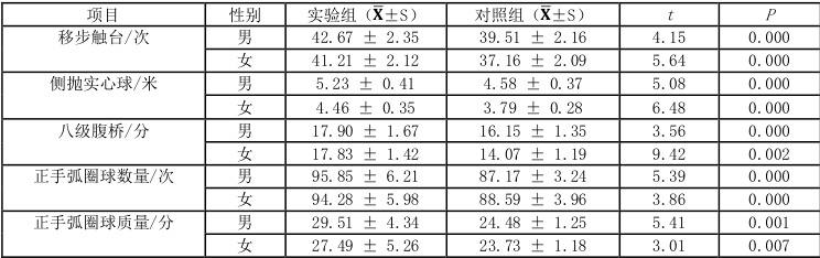 3.1.4 实验组与对照组身体素质及专项技术测试结果对比分析