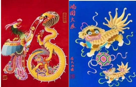 同时,汉绣手艺人有着较为深远的文化自觉,在他们进行创作的过程中,并不是只考虑这种自然形态的视觉效果,而是要充分考虑与这些自然形态本身在历史发展中凝聚起来的象征意味相结合,并以自身的艺术思想加以融汇创造,产生出更多有形似又有象徵意味的经典汉绣作品,如图二中的作品《鸿图大展》。要特别指出的是,这些由汉绣艺人发挥想象并缝绣的各种纹样,它不止是单纯的为内容服务的,更代表着一种深刻的中国文化,以及承载着浓厚荆楚先民生活气息的符号。