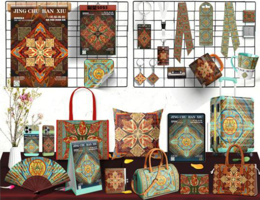 文创产品是通过对传统文化的创意转化,而诞生的具有文化价值和市场价值的高附加值产品。对汉绣文化的传承与发展具有极其重要的意义。通过文创产品把纹绣纹样进行创意设计,不仅可以提高汉绣纹样的经济价值,而且能进一步弘扬荆楚汉绣文化。汉绣文化是中国珍贵的非物质文化遗产,蕴含了大量对美好生活的祝福寓意。把汉绣纹样运用到现代文创产品设计中,可以为文创产品注入了更丰富的精神内涵和故事性。在文创品类中形成属于汉绣文化的独特性。以此来满足更多消费者追求个性化的生活需求,提供更多的情绪价值。汉绣文化作为具有特色楚文化的视觉符号,能在众多商品中产生一定的差异化效果,在差异化加持下,能增强产品成为文创爆款的可能性。在经济快速发展的今天,文创产品已成为一条行之有效的传承保护途径,也成为了连接传统文化与现代生活的重要纽带,使两千多年前传承下来的汉绣文化走入现代生活。为传统汉绣文化创造了新的传承和保护路径。