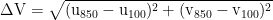 垂直风切变(∆V)采用公式(1)计算。其中: u 和 v 分别表示东西向和南北向的水平风,下标表示 850hPa和 100m 高度。