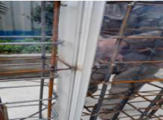 待墙柱钢筋绑扎完成后,根据拉缝设置图纸进行竖向拉缝板安装,本项目竖向拉缝板稳定钢筋采用直径φ8 三级钢筋间距为 300mm(端部平整,不超出墙面)锚入相邻主体墙体及连梁内连接固定(见图 6),施工过程中采取有效措施确保安装位置准确及牢固,防止结构拉缝材料失效、倾斜。控制好钢筋尺寸及保护层垫块密度,避免钢筋摆动过大造成竖向拉缝板移位,拉缝板的两端位置均需要用胶带封口,防止混凝土灌入板内。