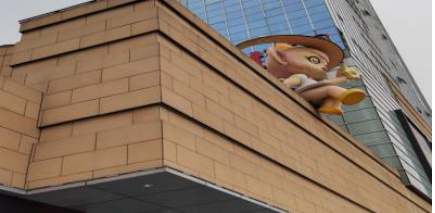 本工程项目在刚开始进行A 区幕墙安装时,为了确保施工进度快速推进,现场管理人员在石材采购和验收过程中疏忽了对石材色差的严格把控,未进行充分的颜色匹配和质量检查。石材色差问题主要表现为表面颜色不均匀,这直接影响到幕墙的整体美观和工程验收标准。因此,在安装后发现大量石材存在明显色差,不得不对已安装部分进行返工更换,涉及A 区近 50%的石材面积,额外消耗了大量人力、物力和时间资源。这一返工过程不仅增加了施工成本,还严重延误了原定工期达两周以上,对整个项目的进度控制造成了重大干扰。A 区石材幕墙色差安装成型图见图 3