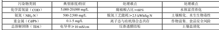 1.污染物富集效应:含腐植酸类难降解有机物(COD 残留量≥5000 mg/L)及 Cu、Pb 等重金属(Pb2+浓度 0.1-5 mg/L