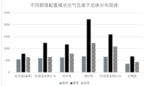图 4-10 不同群落配置模式空气负离子浓度总体分布规律图