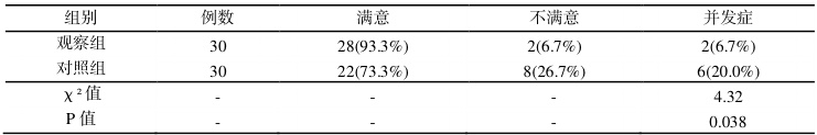 表 2 对比满意度及并发症
