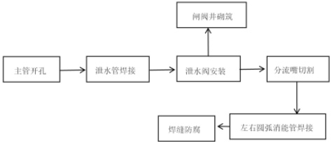 根据地形及供水要求,确定冲砂管出口位置及闸阀位置,再进行管材加工。采用砂轮切割机切割,避免出现较大毛刺,需一次性完成切割,切割完成后对毛刺进行打磨。