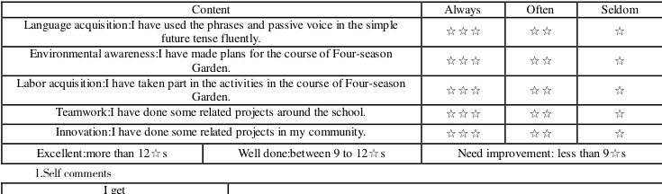 Teacher:According to your work in the project,I would like to give you _____☆ 五、知行融创:项目式学习中英语学习与劳动教育融合的结语和启示
