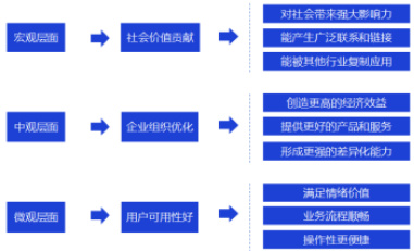 企业级B 端产品的体验策略设计需从社会价值、组织效能与用户可用性三个维度进行系统性考量,如图 3 所示。从宏观视角而言,需要考虑新产品和服务对社会影响力与可持续发展价值,具体体现在促进产业绿色转型、优化资源配置以及提升社会环保意识等方面[13]。以能源、交通、港口等重工业领域为例,通过引入智能化与绿色化设计理念,可显著降低能源消耗与碳排放,进而推动行业可持续发展范式转型。
