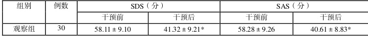 注:SAS: 焦虑自评量表:SDS: 抑郁自评量表;同干预前比较,*P<0.05。