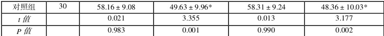 2.1 负性情绪观察组低于对照组( P<0.05 )。见表 1。