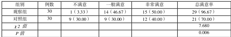 (3)护理满意度: 选择我院自制问卷,包含非常满意、一般满意、不满意,所得分数与病人的满意度成正比。总满意率=(一般+非常)满意/总纳入样本量 ×100% 。