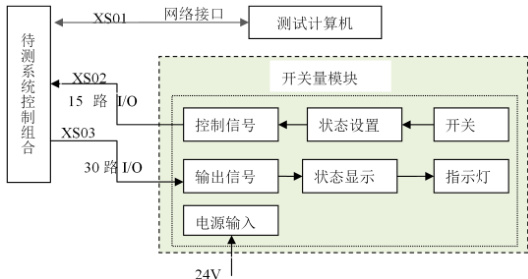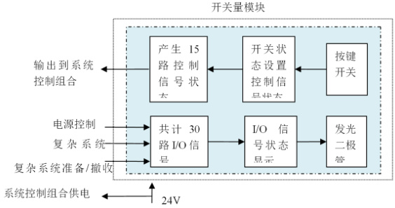 其中开关量模块为系统控制组合提供供电电源及 15 路控制信号,并显示系统控制组合的 30 路状态输出,如图 2 所示。