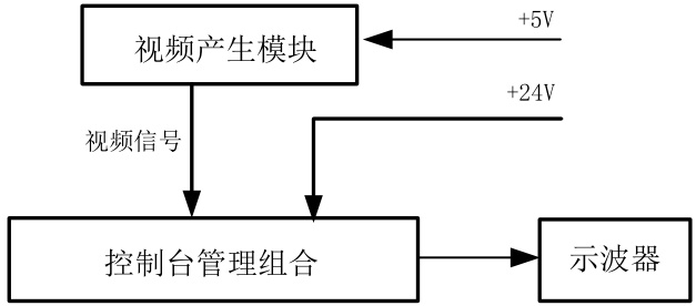 信号产生模块生成控制台管理组合检测所需的测试信号,采用 DDS 模块[6]扩展生成 6.5MHz, 1VPP±10% 的正弦波视频信号,用于控制台管理组合的检测。控制台管理组合测试原理框图如下: