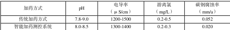智能加药测控系统运行前后分析对比,如下表(图)所示: