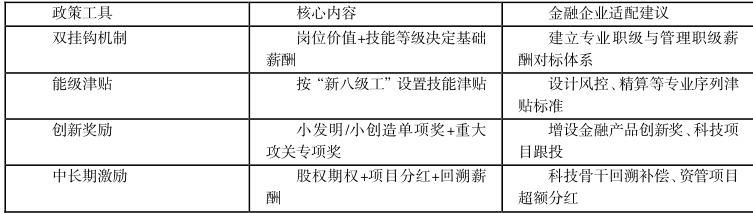 表:国企技能人才薪酬政策要点与金融企业适配方向