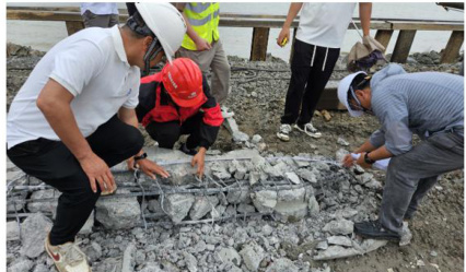 工程上使用的主要原材料有水泥、钢筋、骨料等,如水泥标号不足、钢筋使用非标产品、骨料含泥量高,将直接影响主体工程质量。另外,工程上使用的混凝土构配件,由于强度不到,在施打过程中出现桩头破损或断桩情况,影响上部结构承载安全。