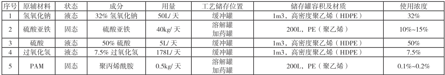 本项目涉及的化学品有氢氧化钠、硫酸亚铁、硫酸、过氧化氢、聚丙烯酰胺。