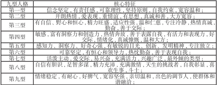 表2 九型人格核心特征