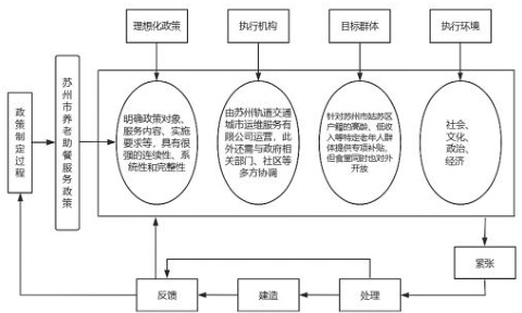 基于史密斯政策执行过程模型,结合苏州市广济南大食堂老年餐桌“轨交 + 养老”的创新场景特性,本研究构建了包含 “理想化政策、执行机构、目标群体、执行环境”的 四维动态分析框架(见图 1)。