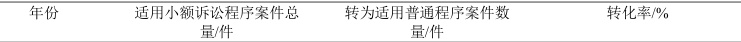 表3 江苏省基层法院小额诉讼程序转为简易程序转化率统计