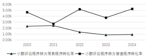 图1小额诉讼程序转为简易程序和普通程序转化率对比