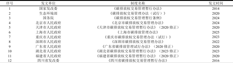 [6] 生 态 环 境 部 . (2020). 《 碳 排 放 权 交 易 管 理 办 法 ( 试 行 )》 . 中 华 人 民 共 和 国 生 态 环 境 部 .https://www.gov.cn/zhengce/zhengceku/2021-01/06/content_5577360.html(最后访问 2025 年 4 月 9 日)