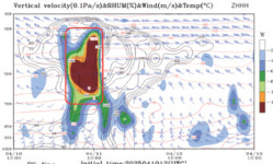 (3)动力条件:低层辐合 - 高层辐散;0-6km 垂直风切变≥ =20m/s (最大 25 以上),0-3km 垂直风切变≥15m/s(最大20 以上);上升运动深厚(700-200hPa 都存在强上升运动),最大上升速度 s 以上;地面辐合线触发机制。