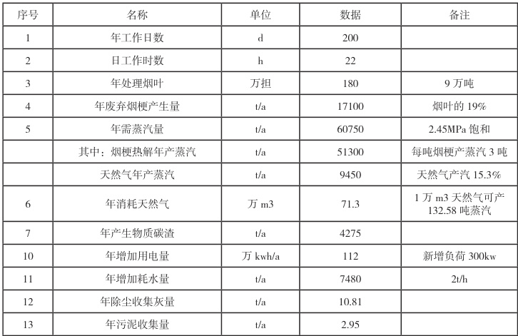 Y 公司设计生产能力为 180 万担(9 万吨)/ 年,年产废弃烟梗 1.7 万吨。原来的处置办法是一部分作为循环流化床锅炉燃料,与燃煤一起掺烧,一部分粉碎后做生物有机肥的原料。2017 年烟叶公司实施煤改气项目后,2 台燃煤锅炉改为 2 台 20t/h 燃气锅炉后,无法掺烧烟梗。目前烟梗只能委托有资质单位代工粉碎毁形,每年烟梗处置费用需花费数百万。如果能将烟梗气化后与天然气混烧,即使减少一半的天然气消耗,每年将节约燃料费。加上节约的烟梗处置费用,经济效益明显。[5]