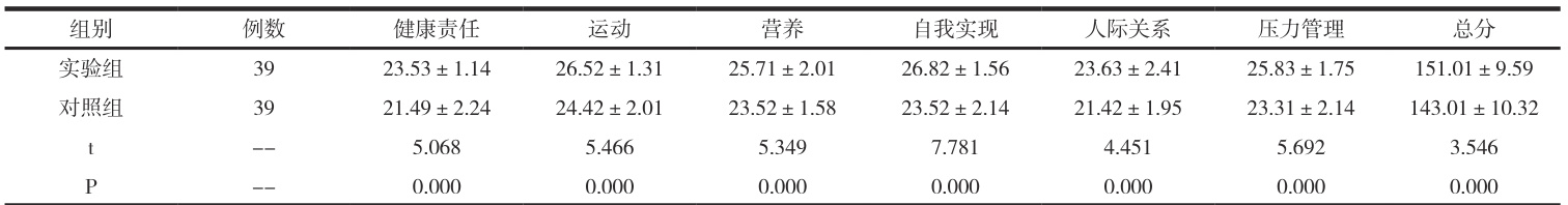 健康生活方式,评估采用HPLP- Ⅱ量表,该标准化测评工具包含六个关键维度:健康责任管理(9-36 分)、体能活动(8-32 分)、膳食营养(9-36 分)、个人成长(9-36 分)、社交互动(9-36 分)以及应激调控(8-32 分)。