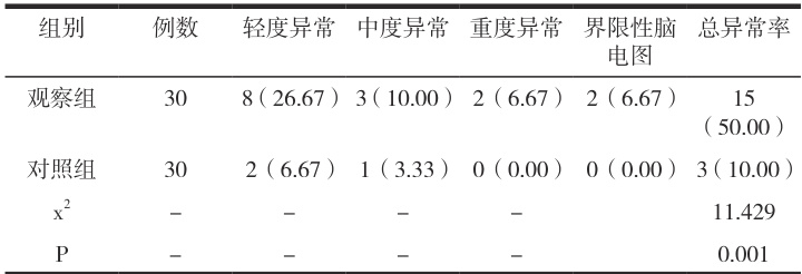 表1 脑电图检测结果对比 (n,%)