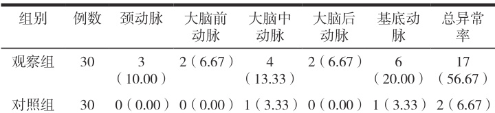表2 经颅多普勒检测结果对比 (n,%)
