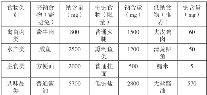 表1 常见食物钠含量速查表(每100g)
