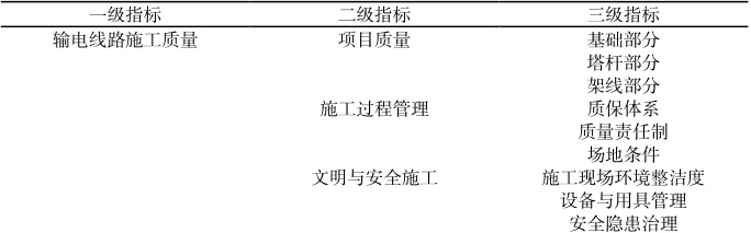 输电线路的施工过程中,施工现场需要有专门人员负责监管,监督施工全过程,按照监管所得信息完善管理制度。以此次分析电力工程中的架空施工为例,涉及高空作业的部分能减少对地面面积的占用,是输电线路施工领域比较常见的技术。管理人员对架空施工过程进行监督,重点检查施工现场的杆塔接地设施,保证设施安装质量、杆塔可按要求分散电流,以免形成突发性事故。除此之外,管理人员专门构建针对此次电力工程施工监管的指标体系,指标体系见表1,分层实施输电线路施工监管,保证施工质量。
