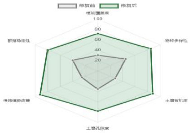 图 1 案例区生态修复前后多维度指标对比