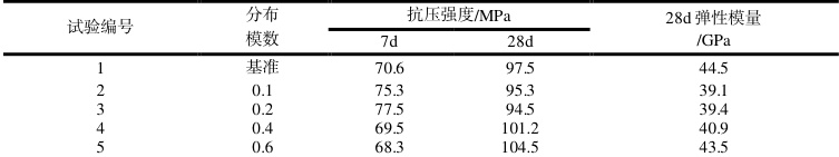 采用上述人工调配的不同分布模数的机制砂进行混凝土各项力学性能试验试验结果如下表9所示