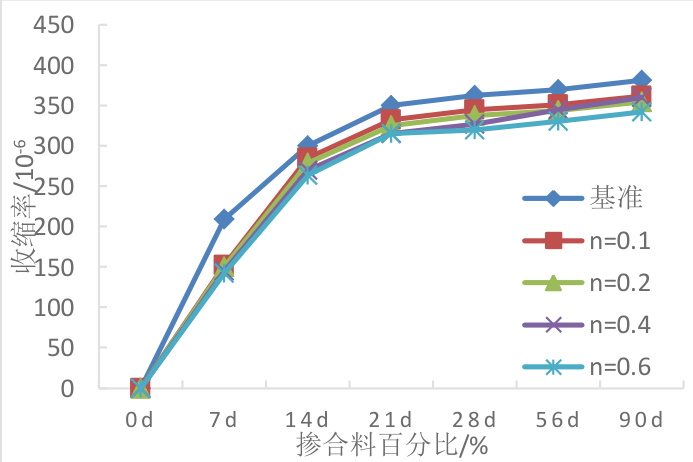 按上述混凝土配合比进行不同分布模数下的干燥收缩试验,下图3为不同分布模数下混凝土干燥收缩随龄期的关系曲线。