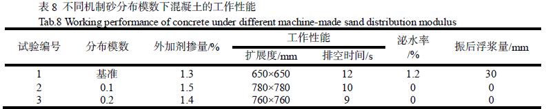 Tab.6 Performance indexes of manufactured sand under different distribution modulus